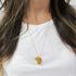 Pendant is plated in 24 karat gold | chain is gold filled | chain length 24" | Care Instructions