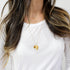Pendant is plated in 24 karat gold | chain is gold filled | chain length 24" | Care Instructions