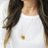 Pendant is plated in 24 karat gold | chain is gold filled | chain length 24" | Care Instructions