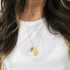Pendant is plated in 24 karat gold | chain is gold filled | chain length 24" | Care Instructions